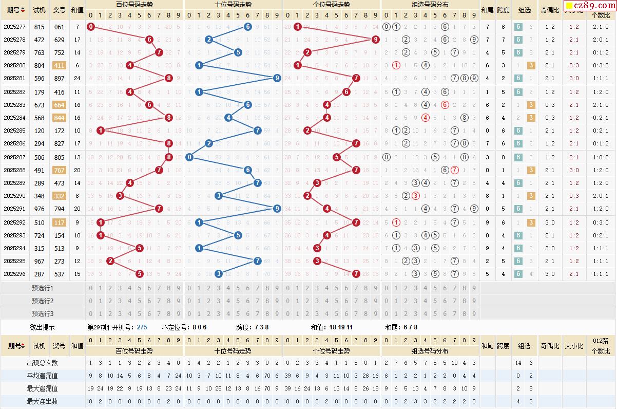 297期福彩3D开奖号码走势图分析